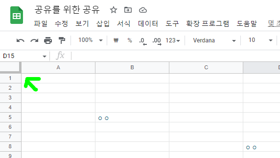 시트 오른쪽 모서리에보면 유난히 굵은 회색 선이 있습니다.