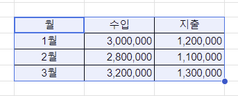 | 월 | 수입 | 지출 |