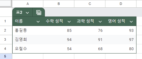 예를 들어 모든 과목에서 90점 이상인 학생의 행을 강조하고 싶다고 가정해 보겠습니다. 이 경우, 다음과 같은 맞춤 수식을 사용할 수 있습니다.