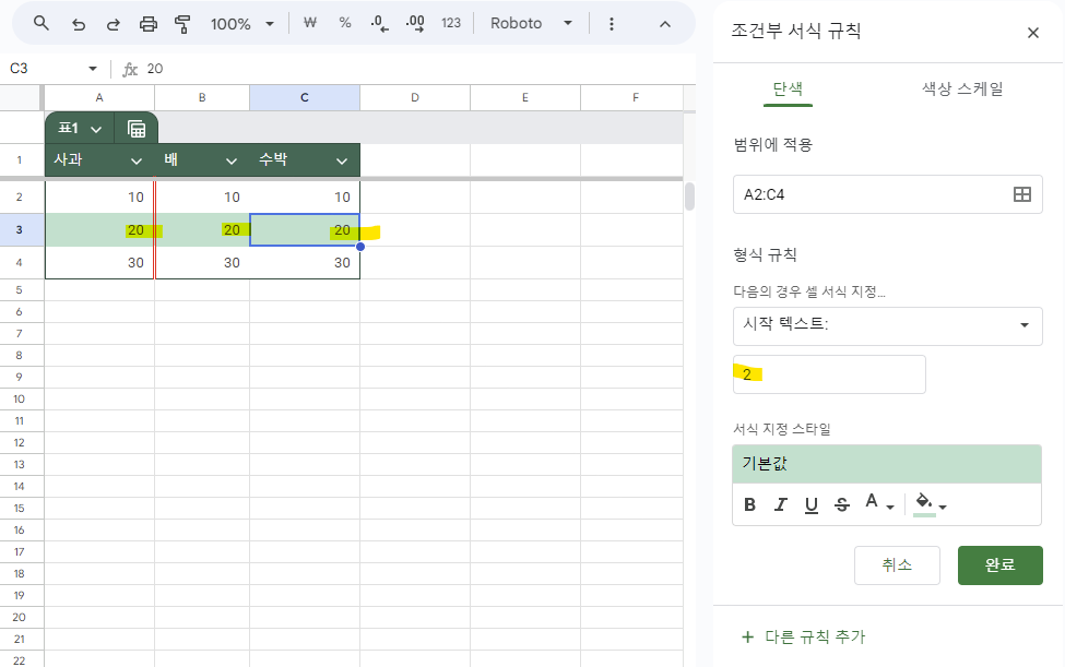 2. 조건부 서식 규칙