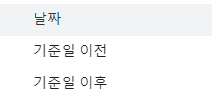 '날짜'를 서택하시면 기준 날짜를 선택할 수 있는 드롭다운 메뉴가 아래에 생성이 되는데, 아래와 같습니다.
