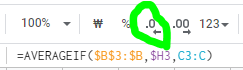 averageif(기준 범위, 기준, 평균낼 값의 범위)