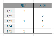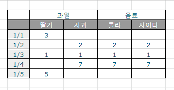 그렇기 때문에 상단 가로 목록으로 식재료를 입력하고, 세로로 날짜를 추가해 나갑니다.