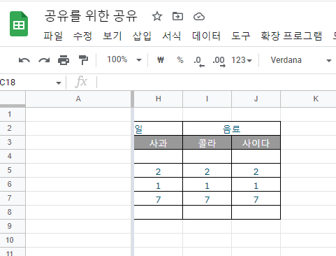 스프레드 시트 (엑셀) 표만들기