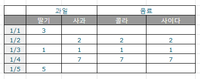 예를 들어 어떤 식재료를 구입하는데, 날짜와 구입 품목을 기록한다고 가정해보겠습니다.
