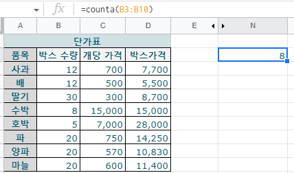 뭔가 값이 들어있는 셀을 세어줍니다.