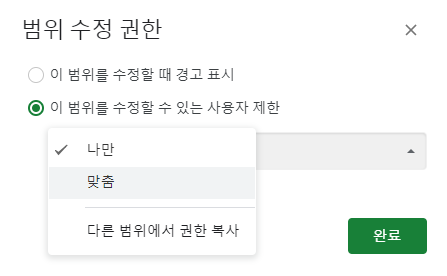 구글 스프레드 시트 공유 권한 / 범위보호 / 시트보호