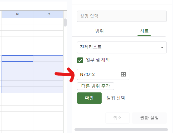 '다른 범위 추가'를 눌러서 또 다른 셀을 추가할 수 있습니다.