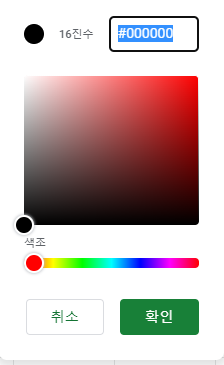 맞춤에 있는 더하기 보양을 누르면 위와 같은 팝업창이 뜹니다. 색 코드를 안다면 #000000 으로 입력 해주시면 됩니다.