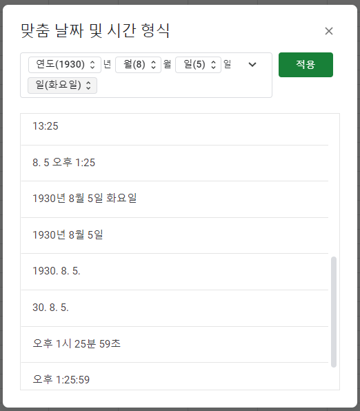 여러가지 날짜 형식이 있는데, 그 중에 요일이 나와있는 형식을 누르면