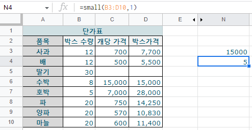 <!--td {border: 1px solid #cccccc;}br {mso-data-placement:same-cell;}-->구글스프레드시트,LARGE,SMALL,순위함수,데이터정렬,수치비교,google sheets,함수활용,자동순위,스프레드시트계산