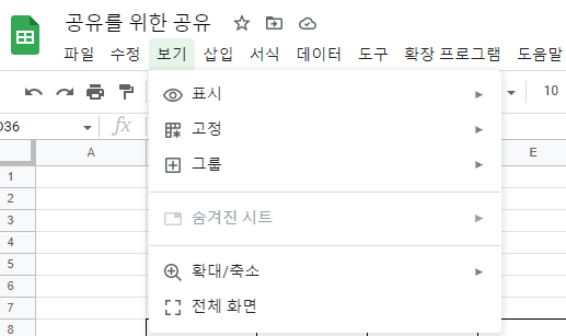 구글 스프레드시트 보기 메뉴 활용법|작업 화면 깔끔하게 정리하기