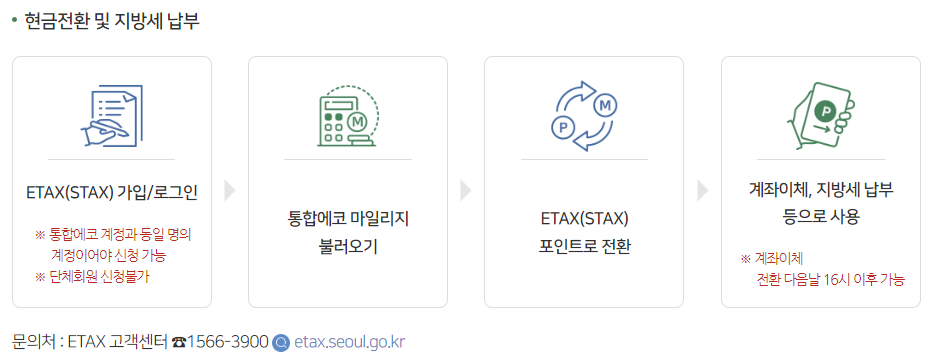 위의 이미지 중 서울 ETAX에서 현금화 및 지방세 납부가 가능하다고 안내되어 있습니다.