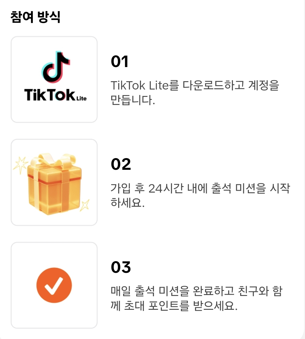 일단 이 링크를 통해서 틱톡라이트에 가입한다. 앱이 없으면 이 링크를 통해 다운 받고 가입한다.
