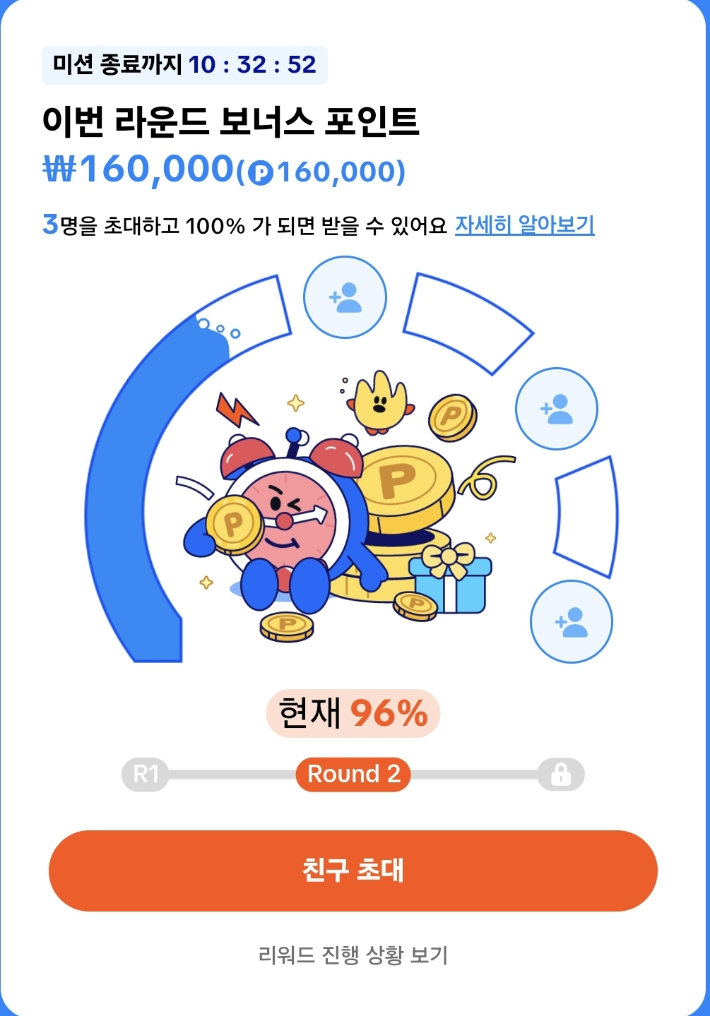 2명 초대가 완료되면 3명을 초대할 수 있게 끔 라운드가 진해됩니다.