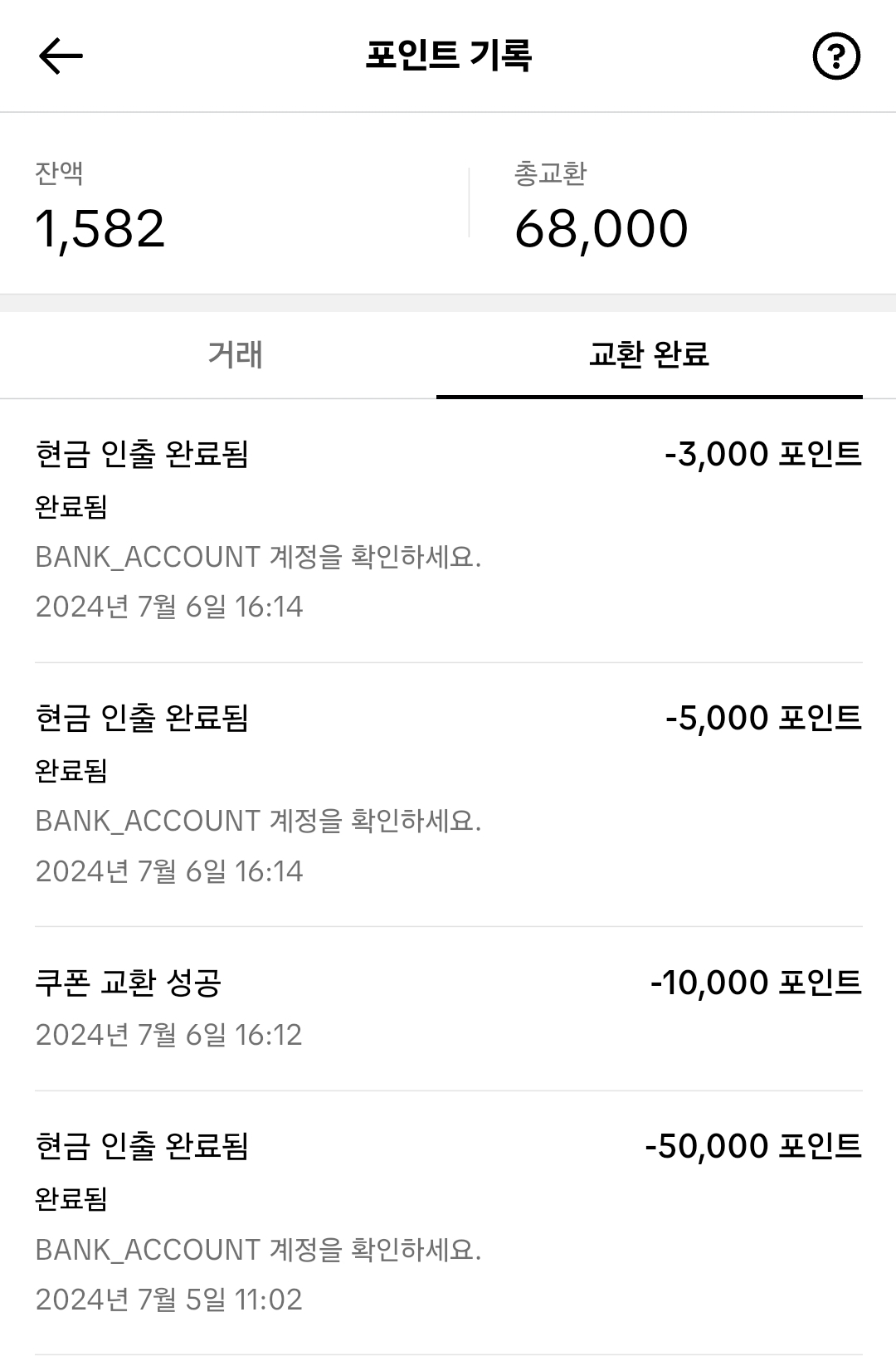 그 후로도 1만원 배민 쿠폰 교환하고, 추가로 3천원 인출했는데 3천원 인출은 딱 1번만 되는거 같다.