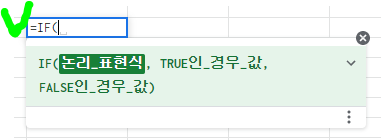 셀에 =IF 정도만 써도 셀 아래에 IF 함수에 대한 설명이 뜹니다.