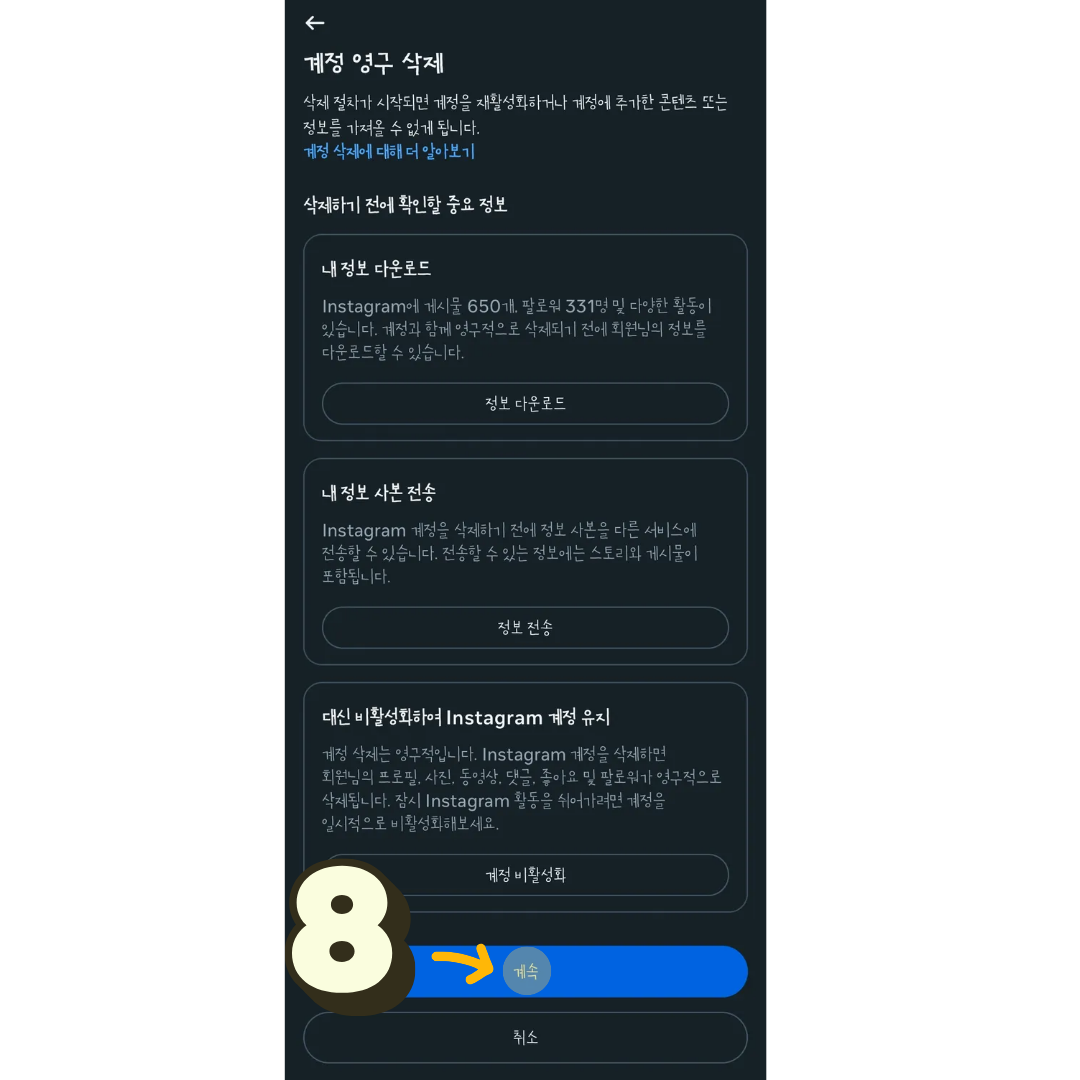 마지막으로 비밀번호를 한번 더 입력하면 삭제 요청이 완료됩니다.!