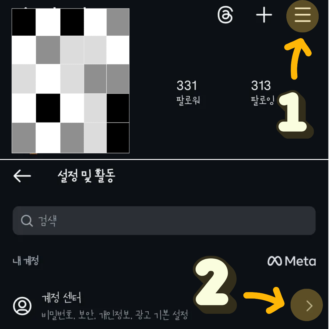 2. 계정 설정에서 계정 센터 메뉴를 클릭해주세요.