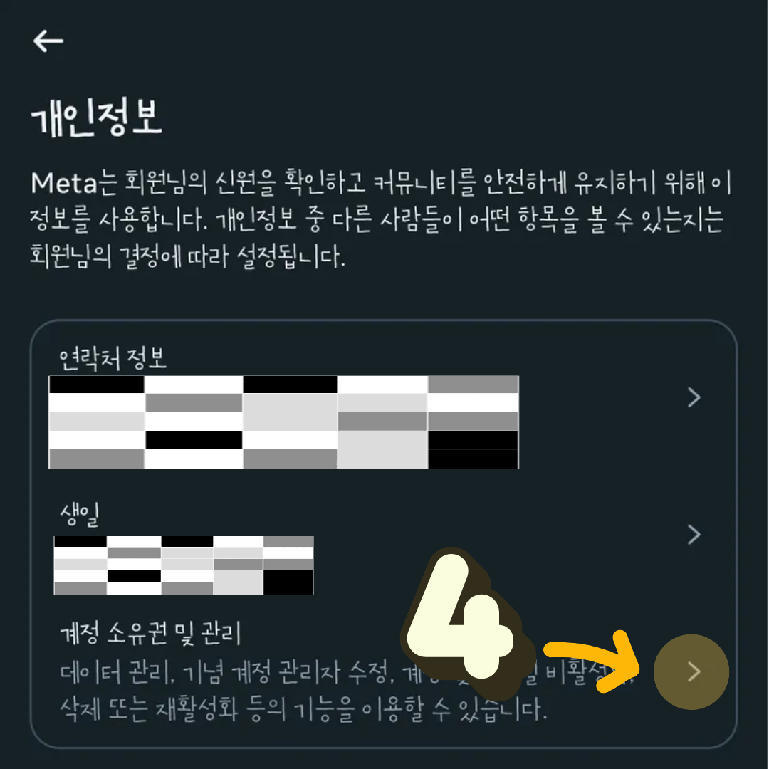 3. 계정 센터에 들어가면 또 다시 계정 설정이 있고, 개인 정보 메뉴를 선택해 줍니다.