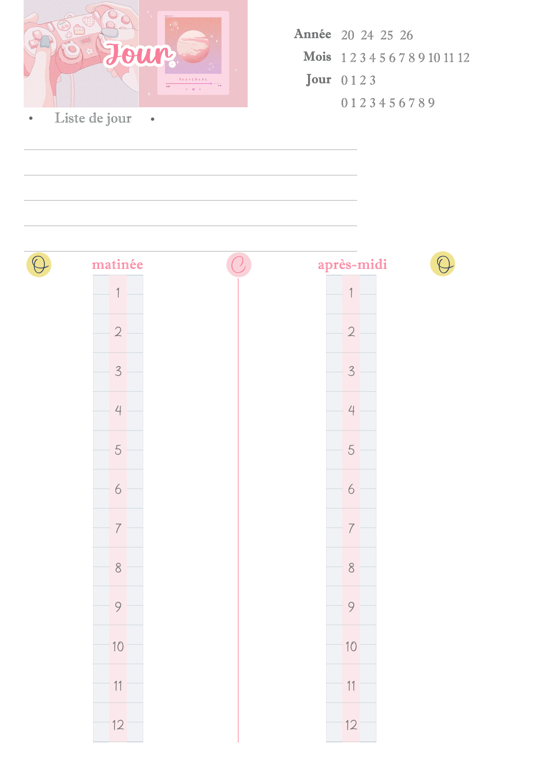 그래서 포토샵으로 다 직접 만들었는데, 핀터레스트나 다른 사이트에서 원하는 속지 양식을 받아 인쇄해도 되고, A5 용지에 직접 그려서 써도 됨. 그리고 파워포인트로 만들어서 뽑아도 됨 !