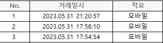 은행에서 출금 내역을 받게 되면 거래 시간대가 일, 시, 분, 초가 다 나오게 됩니다.