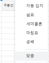 저 '자동 감지' 란 위의 사진에서 보듯, 스프레드시트가 스스로 데이터 분할 기준을 선택합니다.